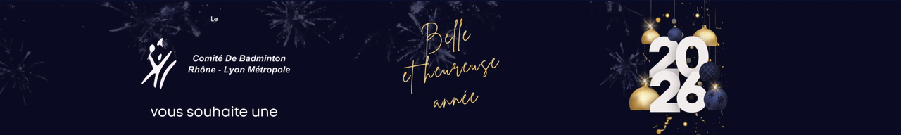 - BONNE ANNEE 2026 !BONNE ANNEE 2026 ! Toute l’équipe du Comité de Badminton Rhône- Lyon Métropole vous souhaite une belle et heureuse année 2026 et vous adresse tous ses meilleurs vœux ! En… Lire la suite : BONNE ANNEE 2026 !